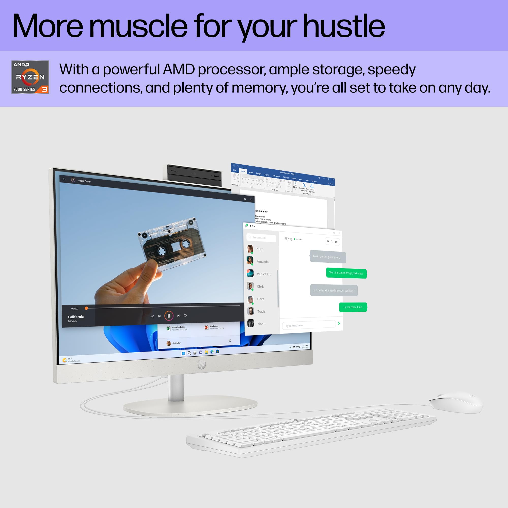 HP 23.8 inch All-in-One Desktop PC, FHD Touchscreen, AMD Ryzen 3 7320U, 8 GB RAM, 256 GB SSD, AMD Radeon Graphics, Windows 11 Home, Shell White, 24- cr0420 (2025)
