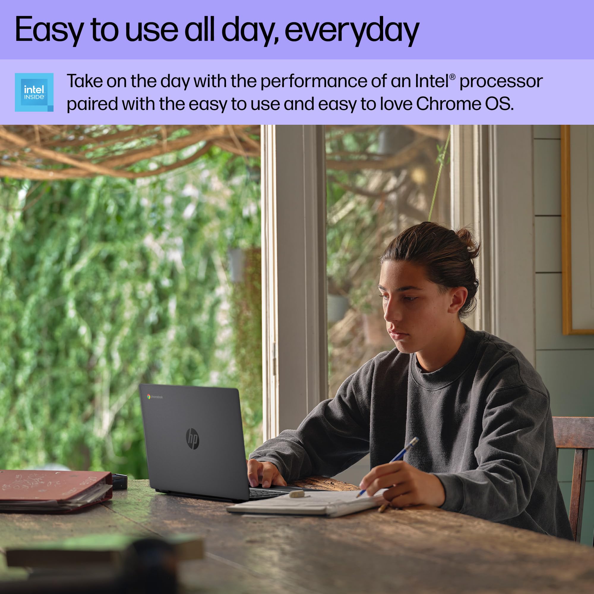 HP Chromebook 14 inch Laptop, HD Display, Intel Processor N100, 8 GB RAM, 128 GB UFS, UHD Graphics, Chrome OS, Chalkboard Gray, 14a-nf0099nr