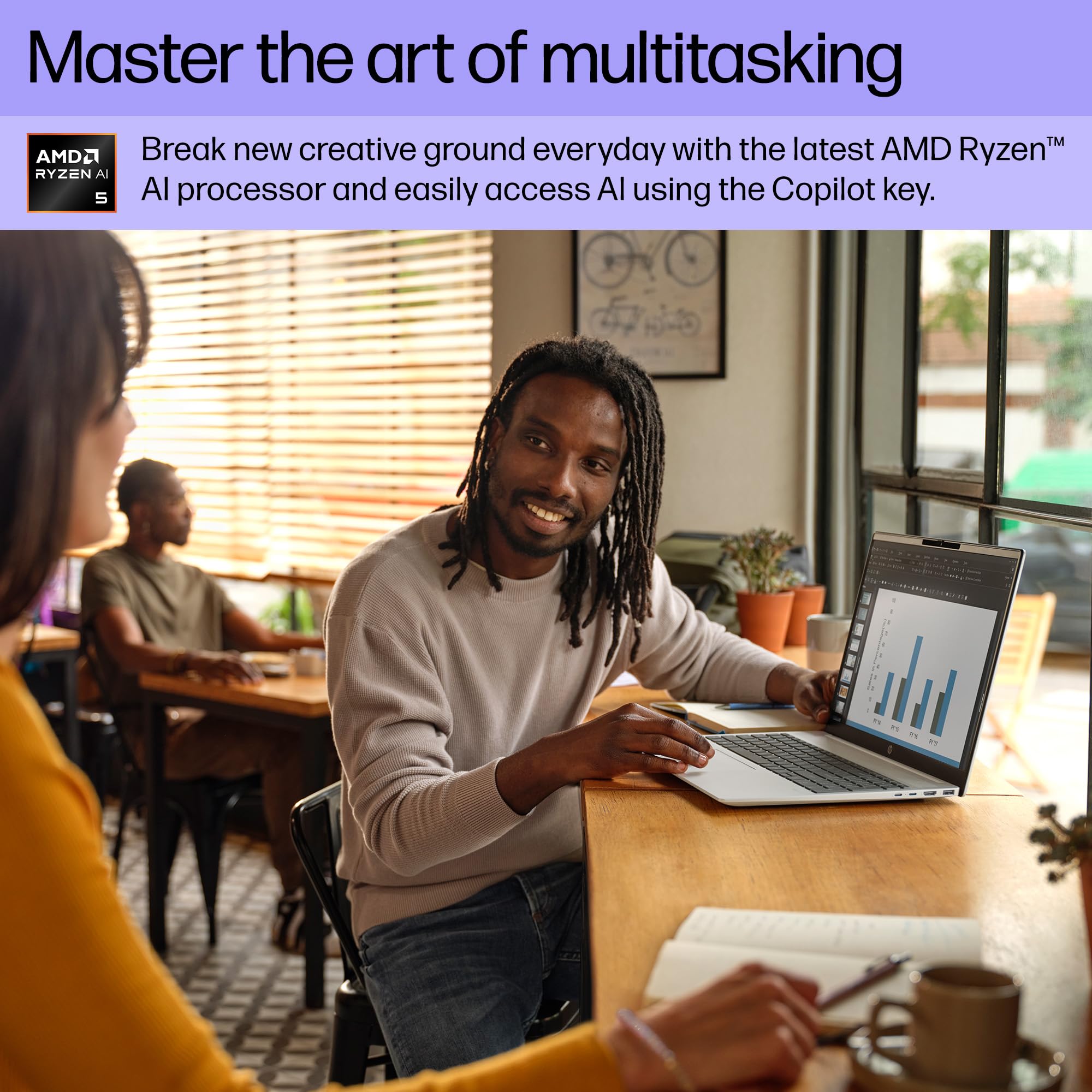 - AMD RYZEN AI PROCESSOR - Unlock transformational AI PC experiences with an AMD Ryzen AI 5 processor and AMD Ryzen AI NPU (50 TOPS), designed to bring pure speed, responsiveness, and power efficient AI processing to your Copilot+ PC