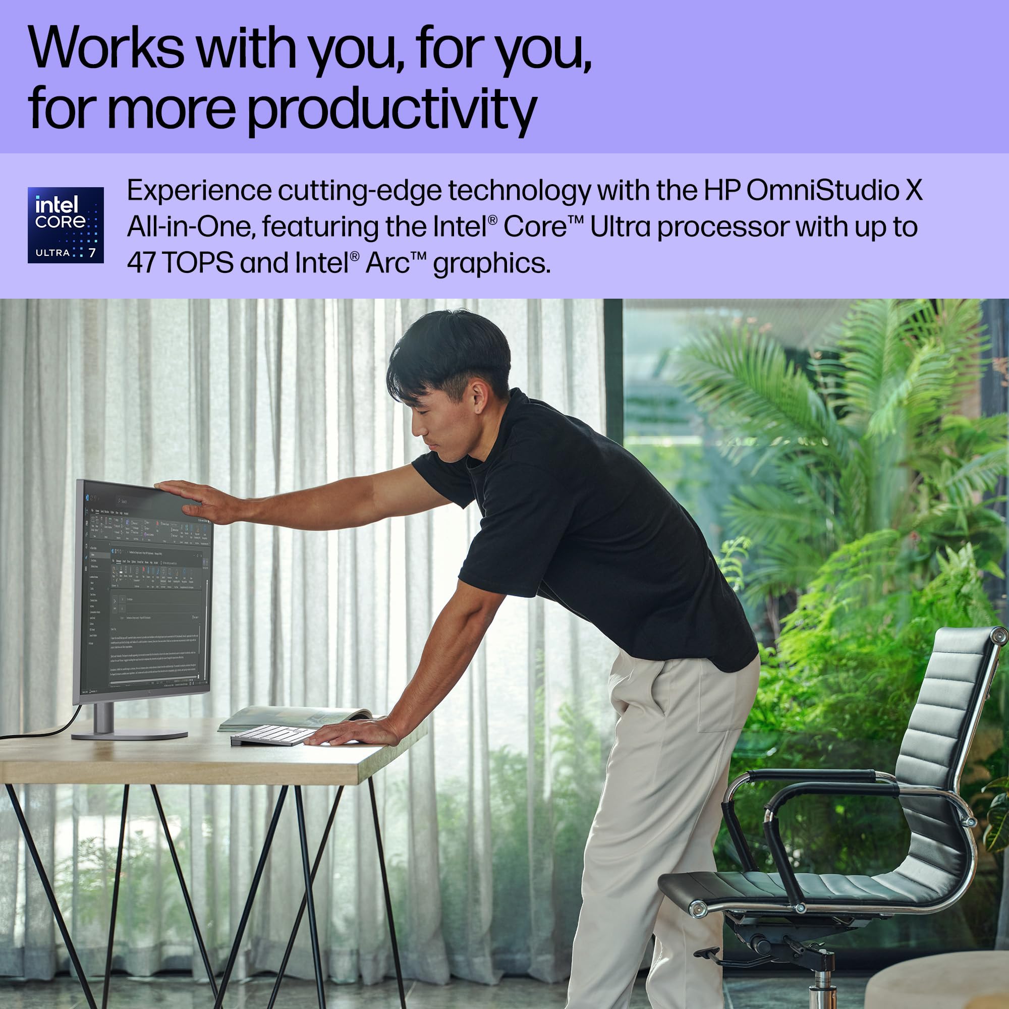HP OmniStudio X 31.5 inch All-in-One Desktop AI PC, 4K Ultra HD, Intel Core Ultra 7 256V, 16 GB RAM, 2 TB SSD, Intel Arc Graphics 140V, Windows 11 Home, Copilot+, Meteor Silver, 32-c1010 (2025)